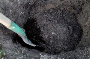 Za sadnju iskopajte jamu 60 x 60 cm i dubine jednog zahvata štihače. Ako ste nabavili kontejnirane sadnice, potrebno je iskopati manju jamu. U tom slučaju, iskopajte jamu nešto veću od veličine kontejnera i u nju stavite sadnicu zajedno sa zemljom iz kontejnera. Dno jame prorahlite grabljama ili nekim drugim prikladnim vrtnim alatom. Tlo u jami treba biti obrađeno (prorahljeno) do 10-15 cm dubine. U slučaju da je dno jame jako tvrdo umjesto obrade grabljama i prorahljivanja, iskopajte još jedan sloj dubine zahvata štihače, usitnite iskopanu zemlju izvan jame i istu tu zemlju vratite natrag u jamu. Osim toga, tlo se može pomiješati i s kompostom.