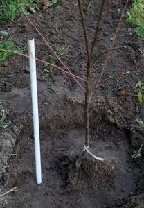 Odmah nakon sadnje, voćku obilno zalijte vodom. Tek posađenim voćkama je potrebno dosta vode, sve dok se ne razvije korijen.